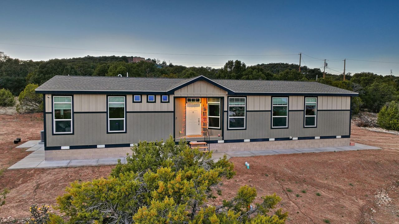 Discover your dream home in Tijeras! This nearly new manufactured home, built in 2025, sits on a generous 2.5 acres of land, mixing comfort with outdoor living. Revel in the stunning views, private tree-lined spaces, and the benefit of fully fenced property, complete with gated access. With ample flat areas perfect for horses and agricultural possibilities supported by approved usage of water and an irrigation system, this home has all you need! The bright and spacious open floor plan boasts three bedrooms, two full baths, and a chef's kitchen outfitted with beautiful cabinetry and stainless steel appliances - ideal for culinary enthusiasts! Additional perks include refrigerated air conditioning and a convenient storage shed. This is a true GEM! Come see it today!