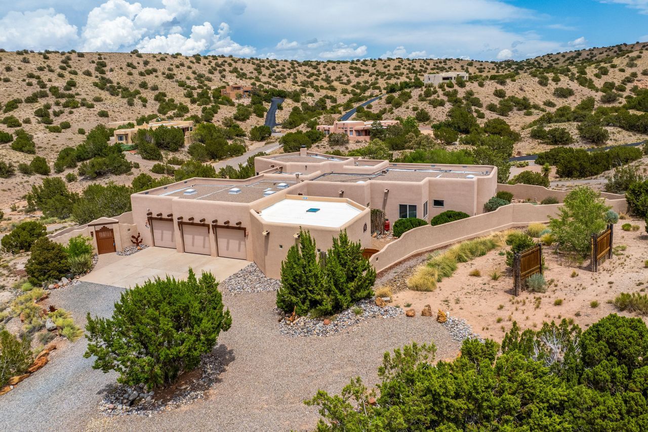Charming Placitas Retreat with studio space! Discover this updated home with Southwest flair, featuring an open concept living area, soaring wood beam ceilings, kiva fireplace & Saltillo tile floors. PLUS a large heated/cooled studio space w/mountain views, large storage room & heated/cooled garage bay for year-round use. Updates include mini-split units, fresh paint & new bedroom carpets. Refreshed kitchen with granite countertops, updated appliances & 2 pantries. Enjoy a private patio with handmade gates, artwork, mature landscaping & walled yards surrounding the home. Property is set against stunning Sandia Mountain & Jemez mesa views and next to Placitas ABQ Open Space for miles of hiking, biking & outdoor activities. Don't miss the chance to make this welcoming retreat your own!