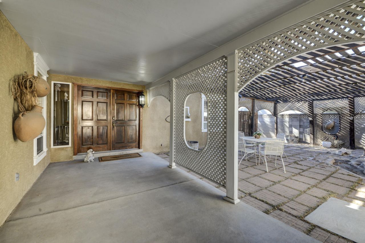 So Great to come home too!! Simple Elegance!! As you go through the secure, electric iron gate into the portal leading to the beautiful courtyard w/custom lattice enclosure and relaxing sound of the fountain--perfect to entertain your friends and family, enjoy breakfast/dinner--it's such a delight. As you enter the house w/open and airy floor plan, skylights, crown molding, custom white shutters and spacious rooms you step into gleaming hardwood floors a beautiful foyer facing a formal/elegant dining room w/custom shutters and balloon curtains connecting thru to the warm and inviting family room with fireplace and French doors and the elegant/ formal living room with custom drapes/large windows/hardwood floors and skylights/crown molding. Special features include: chandeliers, see PSR