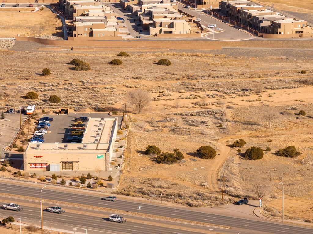 This prime 3.76-acre vacant commercial parcel at 6680 Cerrillos Road offers a unique investment opportunity in the heart of Santa Fe's bustling automotive retail hub, home to a cluster of 12 dealerships. This property is positioned just north of the Walmart Superstore and Presbyterian Hospital and stands out for its strategic location. While some of the land falls within a floodplain, the parcel has approximately 1.5 acres of buildable terrain. This opens up the potential for constructing a two-story structure exceeding 20,000 square feet, with innovative terrain management strategies enabling the second level to align with Cerrillos Road's elevation.