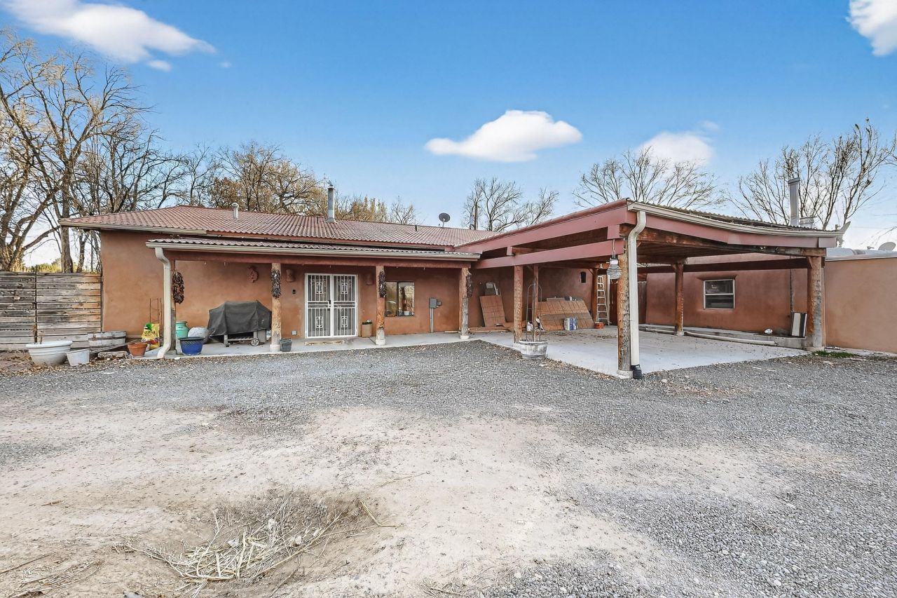Experience serene country living on this beautiful 3.2-acre fully fenced property featuring a classic adobe main home and separate guest house, offering space, privacy, and timeless Southwestern charm.The 2,179 sq ft main residence showcases traditional adobe walls, wood beam ceilings, and beautiful hardwood floors, creating warmth, character, and enduring style throughout. Thoughtfully designed for comfortable living and entertaining, the home blends rustic elegance with a peaceful, inviting atmosphere.A 1,221 sq ft guest house provides excellent flexibility for extended family, guests, or rental potential while maintaining privacy from the main home.The property also includes a 31 x 40 garage with two covered carport areas, offering ample space for vehicles, storage, or